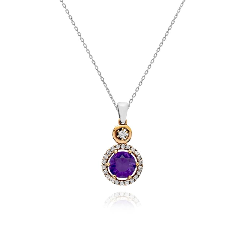 925 Ayar Gümüş Ametist Yuvarlak Taşlı Otantik Kolye (nc-2099)