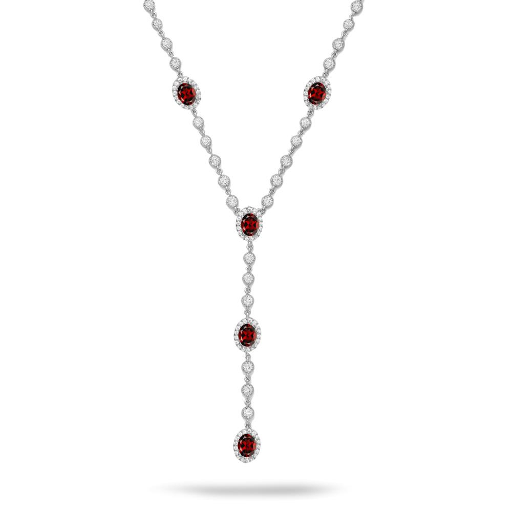 925 Ayar Gümüş Kırmızı Oval Taşlı Y Model Su Yolu Detaylı Kolye