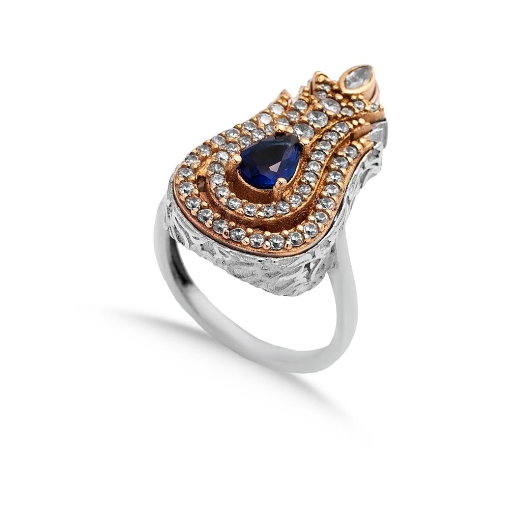 925 Ayar Gümüş Safir Lale Desenli Otantik Yüzük