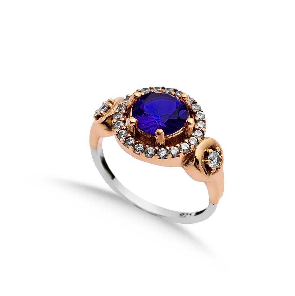 925 Ayar Gümüş Safir Yuvarlak Taşlı Otantik Yüzük